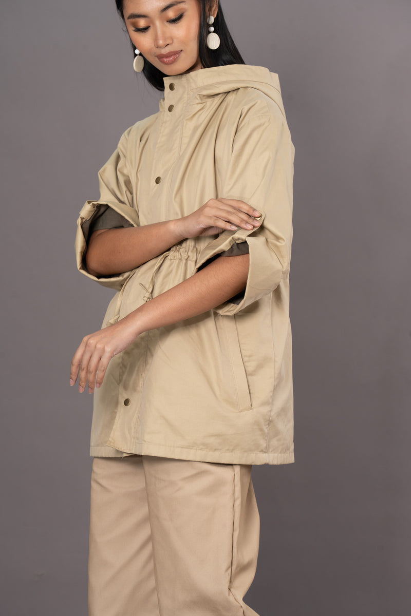 Shell made with 100% waterproof cotton twill in light khaki and black