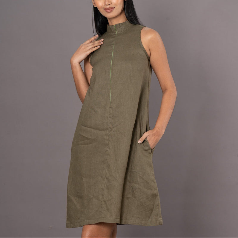 A-line shorts in 100% Linen, Short sleeves in 100% Linen in Olive Green and Black